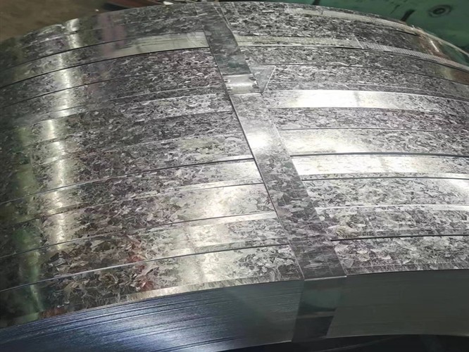 鍍鋅分條是以熱軋鋼帶或冷軋鋼帶為基板,經(jīng)過(guò)連續(xù)熱浸鍍鋅工藝而生產(chǎn)出來(lái)的材料。經(jīng)卷取以卷狀供貨的熱鍍鋅卷;經(jīng)橫切以矩形平板供貨的為熱鍍鋅板,由板切割可得鍍鋅分條。